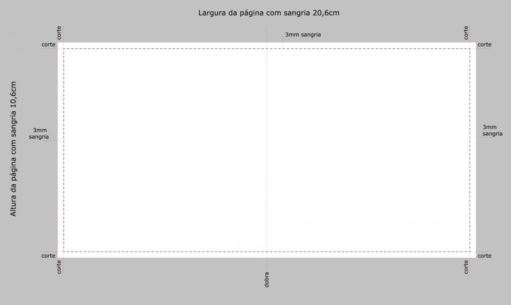 Ex: Folder 20x10- tamanho final / 20,6x10,6 - tamanho do documento com sangria de 3mm nas margens (3mm pra cada lado)